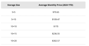 Ranging from small 5×5 storage units treasured by college students or large 10×30 units that can contain an RV, L.A. storage units come in many sizes. Below are average prices for the year to date by unit size: